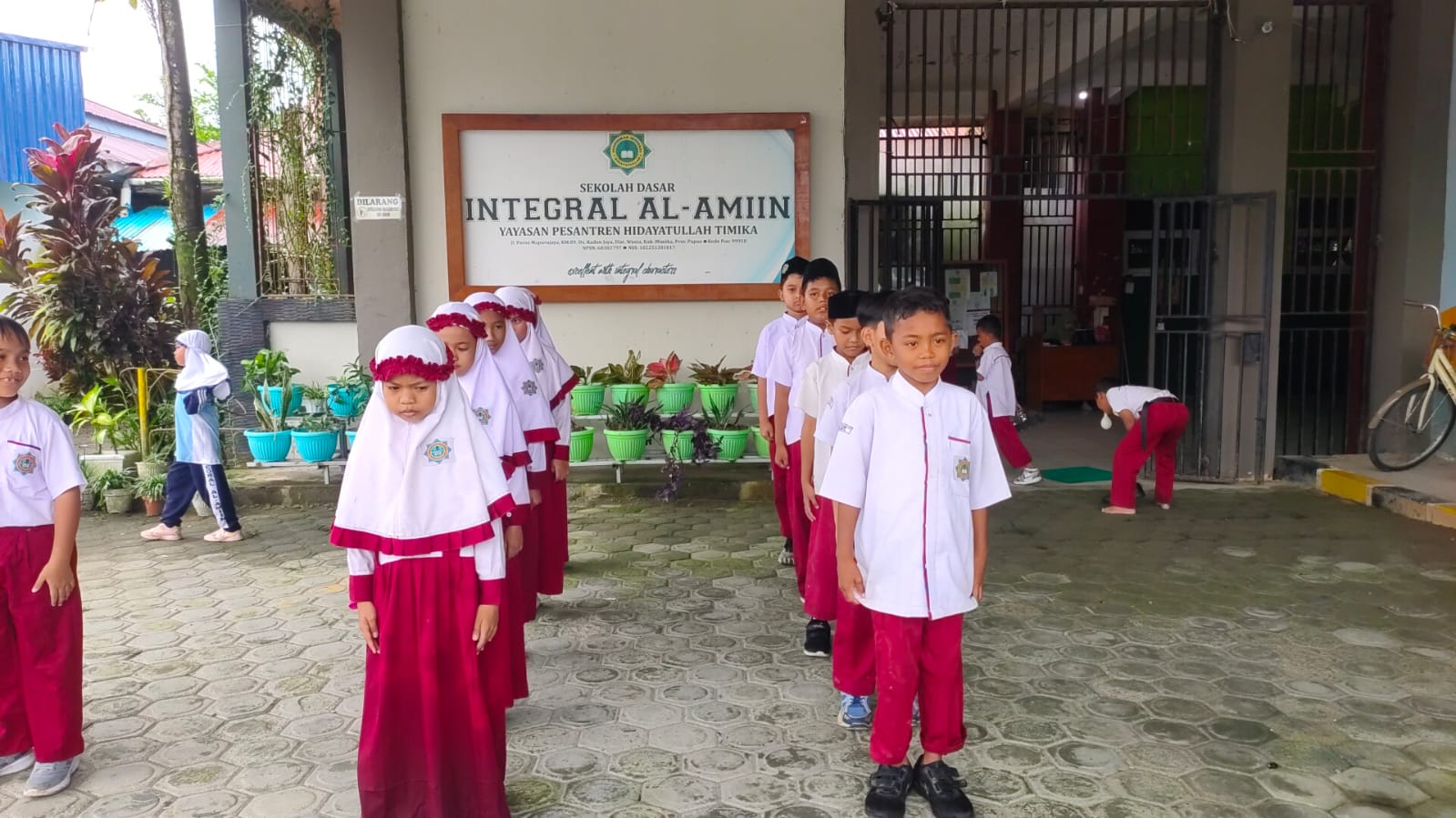 Hidayatullah Timika – SD Integral Al Amiin Hidayatullah Timika mengadakan lomba Peraturan Baris Berbaris (PBB) pada Selasa, 12 Agustus 2025 dalam rangka memperingati Hari Ulang Tahun (HUT) ke-80 Republik Indonesia. Kegiatan ini diikuti oleh perwakilan siswa dari setiap kelas dengan penuh antusiasme dan berlangsung di lapangan sekolah.