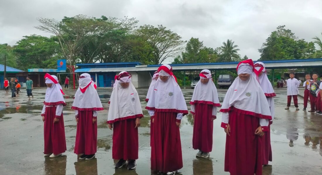 Siswi SD Integral Al Amiin Hidayatullah Timika saat mengukiti Lomba PBB dalam rangka memperingati HUT RI Ke-80 Tahun 2025.